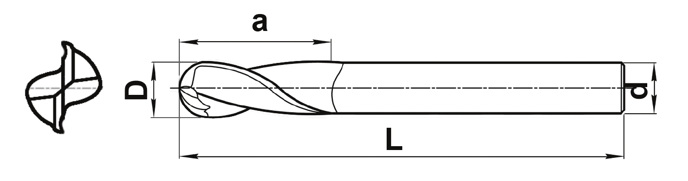 Концевая полушаровая 2-х зубая фреза MT100V-008Z08R02-19-L063-AL DLC