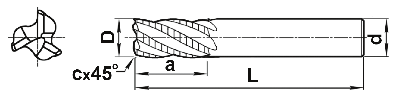 Концевая черновая 3-х зубая фреза с центральным зубом MT190YVB-008Z08R03-19-L063-A030-AL DLC