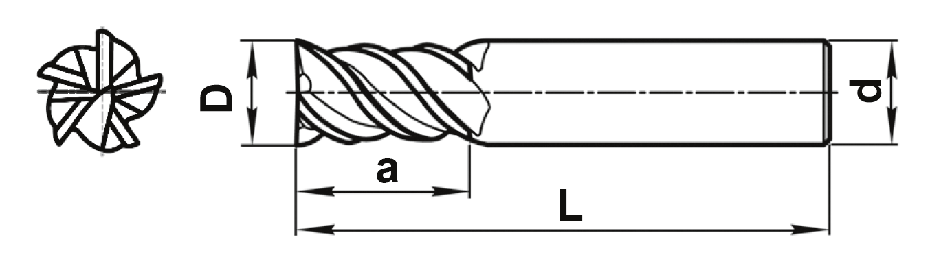 Концевая 5-ти зубая фреза с центральным зубом