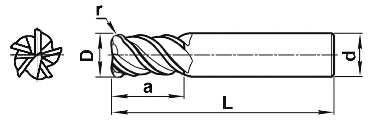 Концевая 5-ти зубая фреза с центральным зубом с радиусом при вершине