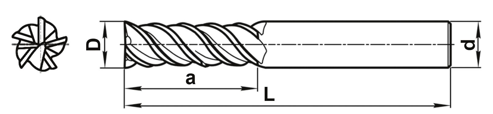 Концевая 5-ти зубая фреза с центральным зубом