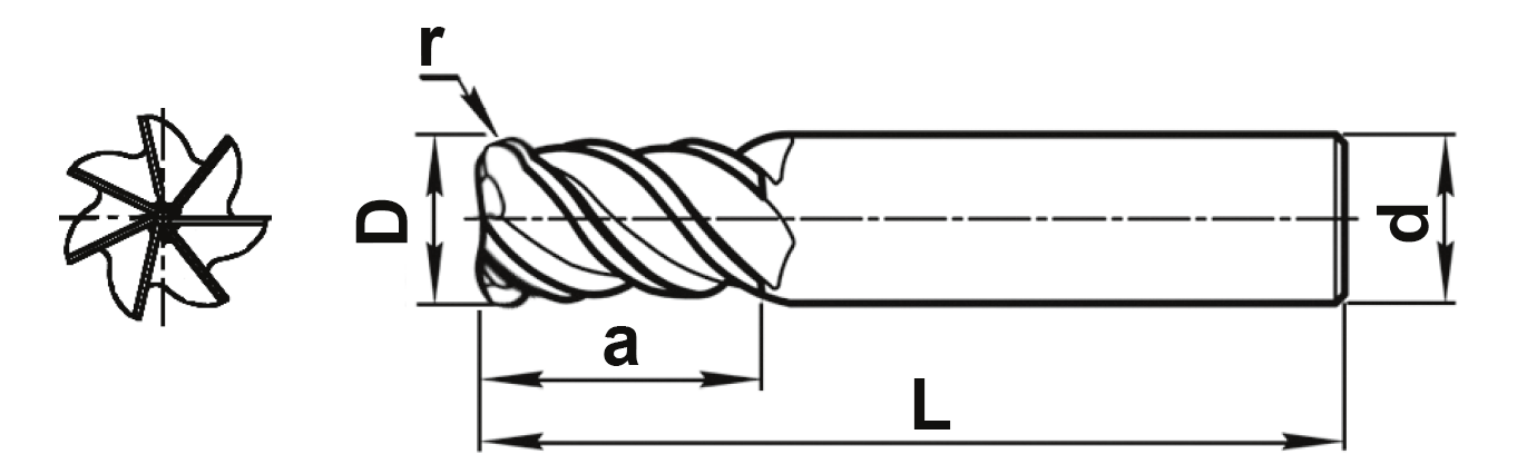 Концевая 7-ми зубая фреза с радиусом при вершине