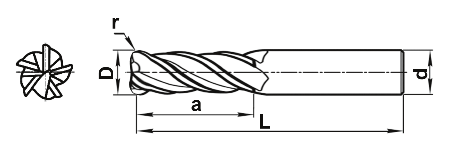 Концевая 5-ти зубая фреза с центральным зубом с радиусом при вершине