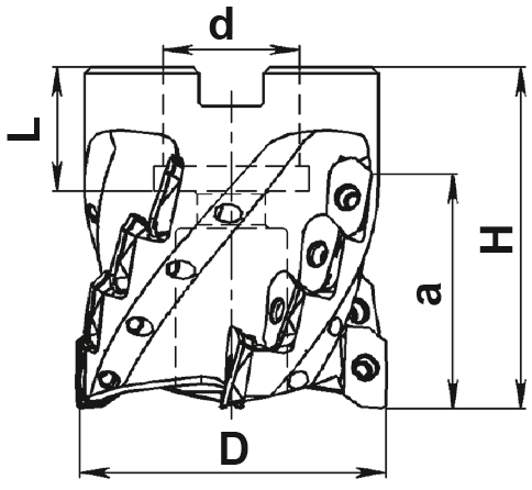 Насадная торцово-цилиндрическая фреза с внутренним подводом СОЖ MT290L-050A22R04SD08-051-IK