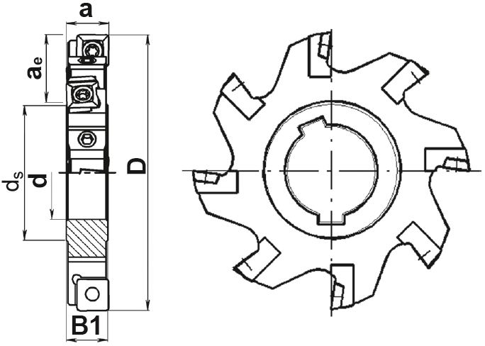 | Форма крепежной части | S - насадное исполнение с базированием по отверстию и двум ступицам |