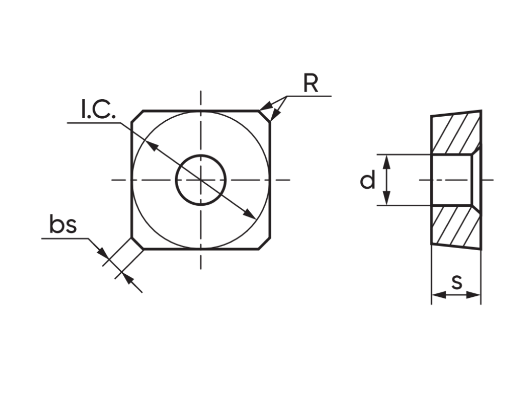 | Тип | T - c отверстием, с односторонней фаской и стружколомом |