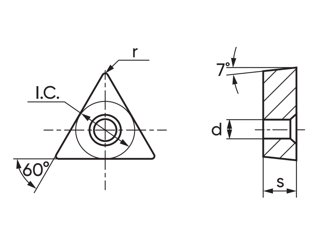 Токарная пластина твердосплавная. Форма пластины треугольная T - угол 60°. Задний угол C - 7°. Класс точности пластины – M. Тип пластины T - c отверстием, с ...