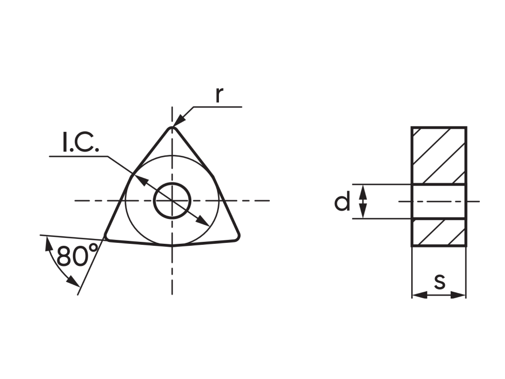 Токарная пластина твердосплавная. Форма пластины ломаный треугольник W - угол 80°. Задний угол N – 0°. Класс точности пластины – M. Тип пластины A - c отверстием, без стружколома. Диаметр вписанной окружности - 12,70 мм±0,05~0,13мм. Толщина пластины - 4,76 мм±0,13мм. Радиус при вершине - 1,2 мм. Длина режущей кромки - 8,69мм. Диаметр фиксирующего отверстия - 3,81 мм.Область применения: сорт применяется для обработки группы материалов P(сталь) K(чугун). Сорт - MK7100 - Сплав предназначен для обработки чугуна. Покрытие CVD придает инструменту повышенную твердость, отличную стойкость к высоким температурам, механическому износу и окислению. Высокая адгезионной прочность − надежность инструмента, долгий срок службы в различных условиях резания. Группа обрабатываемых материалов по ISO: P01-P15, K10-K20.. Внимание!!! Данные режимы носят рекомендательный характер. Величина режимов зависит от многих факторов – жесткости закрепления заготовки, ее вылета, состояния и материала, радиуса и размера пластины, жёсткости и мощности станка и т.д. Ориентируясь на рекомендуемые данные, исходя из ваших условий, опытным путем подбирайте оптимальные для производительности и стойкости инструмента режимы обработки. Ознакомиться с правилами эксплуатации |