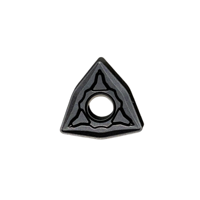 Токарная пластина твердосплавная. Форма пластины ломаный треугольник W - угол 80°. Задний угол N – 0°. Класс точности пластины – M. Тип пластины G - c отверстием, с двухсторонним стружколомом. Диаметр вписанной окружности - 12,70 мм±0,05~0,13мм. Толщина пластины - 4,76 мм±0,13мм. Радиус при вершине - 0,8 мм. Длина режущей кромки - 8,69мм. Диаметр фиксирующего отверстия - 2,3 мм.Область применения: сорт применяется для обработки группы материалов P(сталь) M(нержавеющая сталь) K(чугун). Сорт - MK6020 - Универсальный сплав предназначенный для обработки углеродистых, легированных сталей и их сплавов, обработки чугуна, а также для обработки нержавеющей стали. Покрытие CVD придает инструменту повышенную твердость, отличную стойкость к высоким температурам, механическому износу и окислению. Высокая адгезионная прочность сплава МК6020 обеспечивает надежность инструмента, долгий срок службы пластин в различных условиях резания. Группа обрабатываемых материалов по ISO: P10-P30, M10-M30, K10-K30.. Cтружколом XR - предназначен для токарной и сверлильной обработки углеродистых, легированных сталей и их сплавов, нержавеющей стали, чугуна и жаропрочных сплавов. Режимы резания: скорость резания - Vc=90-240 м/мин; подача - f=0.15-0.8мм/об; глубина резания - ap=1.0-11 мм.. Внимание!!! Данные режимы носят рекомендательный характер. Величина режимов зависит от многих факторов – жесткости закрепления заготовки, ее вылета, состояния и материала, радиуса и размера пластины, жёсткости и мощности станка и т.д. Ориентируясь на рекомендуемые данные, исходя из ваших условий, опытным путем подбирайте оптимальные для производительности и стойкости инструмента режимы обработки. Ознакомиться с правилами эксплуатации |