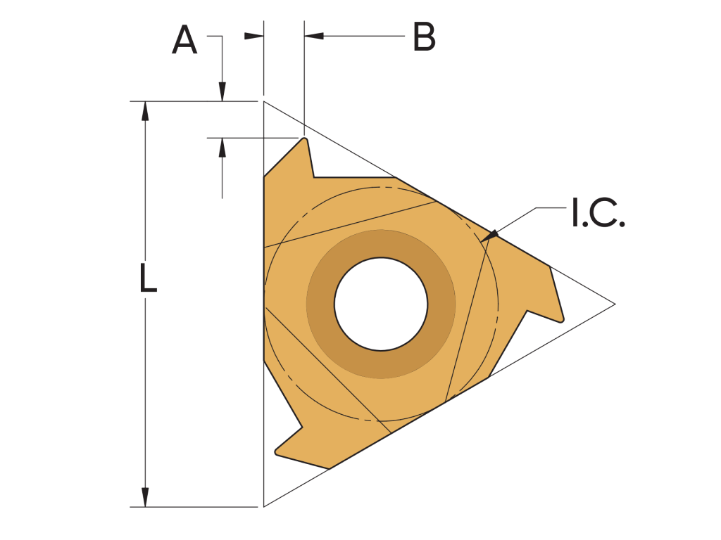 Сменная резьбовая твердосплавная пластина с покрытием РVD. Размер пластины - 16. Диаметр вписанной окружности - 9,525 мм. Диаметр фиксирующего отверстия - ...