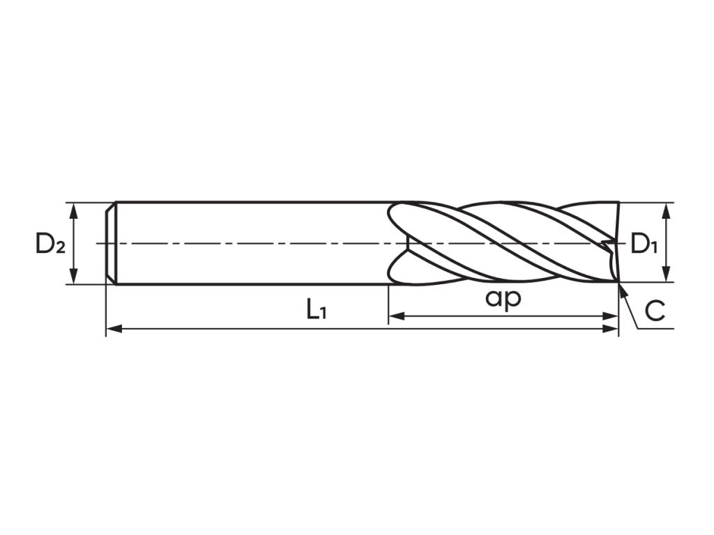 Фреза монолитная концевая твердосплавная. Серия и область применения M13 - для обработки нержавеющих и жаропрочных сталей. Форма торцевой поверхности F - ...