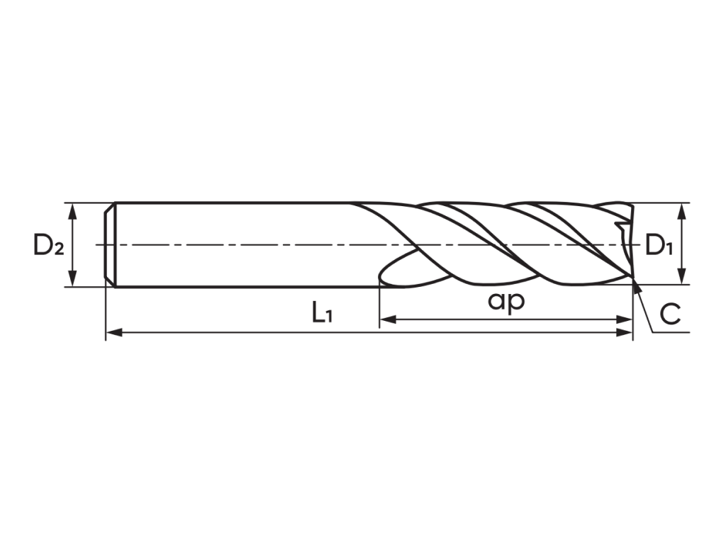 Фреза монолитная концевая твердосплавная. Серия и область применения N93 - для обработки цветных сплавов. Форма торцевой поверхности F - плоская. Диаметр ...