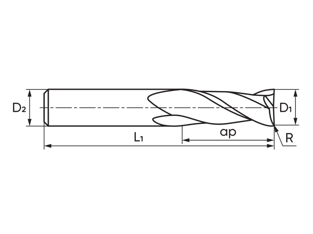 Фреза монолитная концевая твердосплавная. Серия и область применения G21 - универсальное применение. Форма торцевой поверхности F - плоская. Диаметр рабочей ...