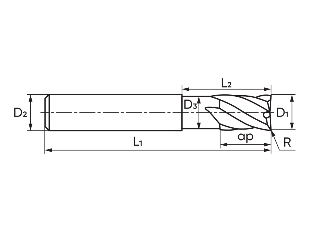 Фреза монолитная концевая твердосплавная. Серия и область применения H501 - для обработки закаленных сталей и сплавов высокой твердости. Форма торцевой ...