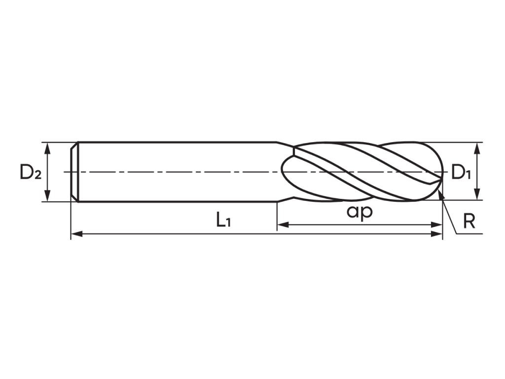 Фреза монолитная концевая твердосплавная. Серия и область применения H572 - для обработки закаленных сталей и сплавов высокой твердости. Форма торцевой ...