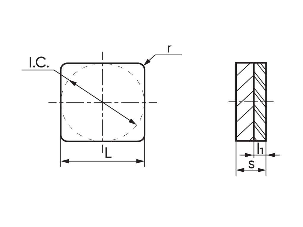Режущая пластина из кубического нитрида бора. Форма пластины S - квадрат. Задний угол N – 0°. Класс точности пластины – G. Тип пластины N - без отверстия, без ...