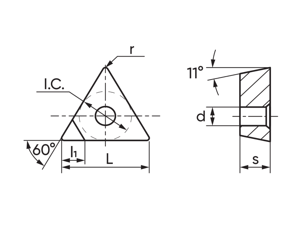 Токарная пластина с напайными вставками из кубического нитрида бора. Форма пластины треугольная T - угол 60°. Задний угол P - 11°. Класс точности пластины – G. ...