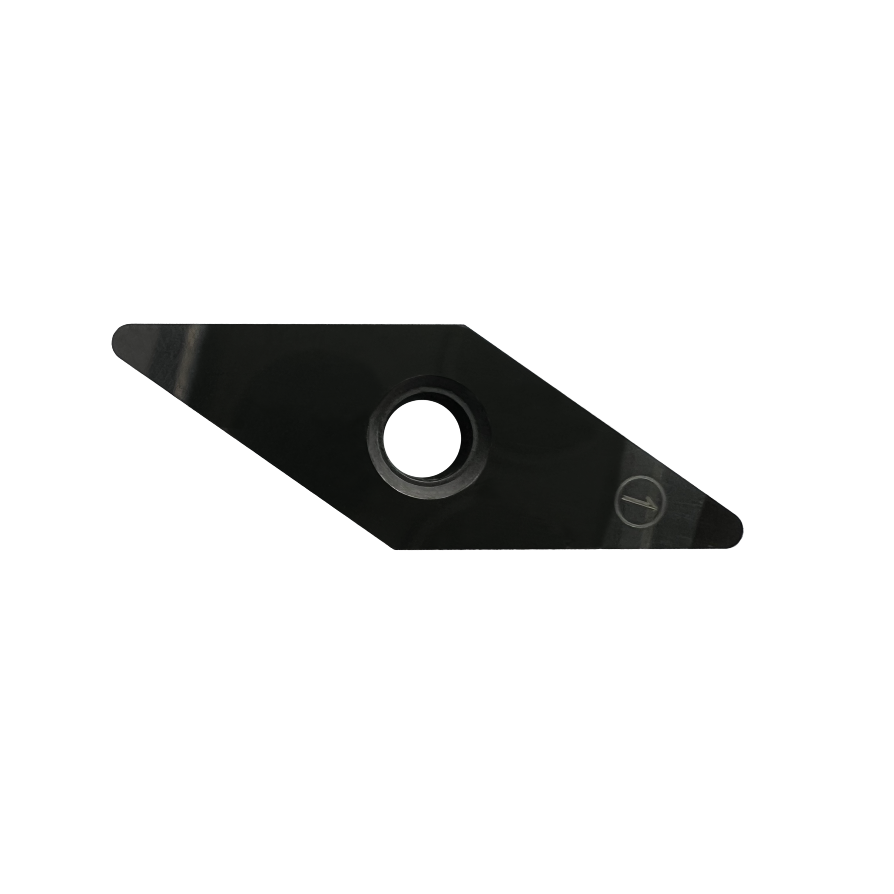Токарная пластина с напайными вставками из кубического нитрида бора. Форма пластины ромбическая V - угол 35°. Задний угол N – 0°. Класс точности пластины – M. ...