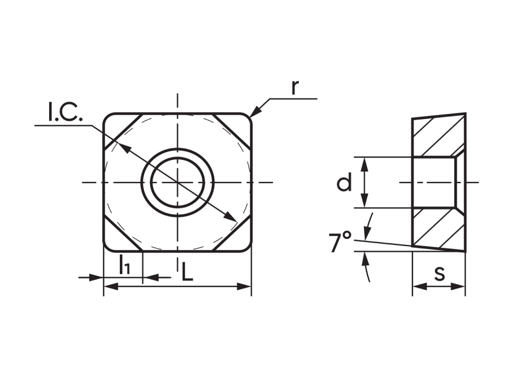 | Тип | W - c отверстием, с односторонней фаской, без стружколома |