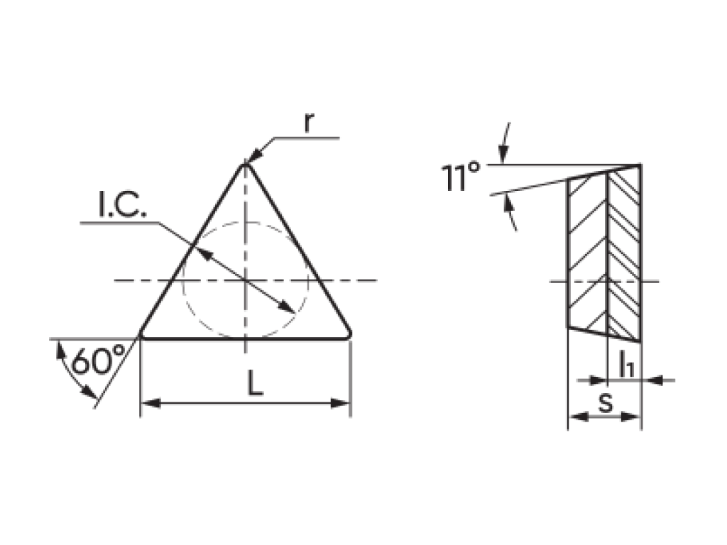 | Задний (боковой) угол пластины | P - с задним углом 11° |